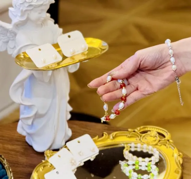 每一颗珍珠都是大自然孕育的纯粹馈赠,独一无二的生长纹路诉说着时光的故事。亲手将它们串联,指尖触摸的是天然的细腻质感,完成的是专属于你的优雅配饰。它不仅是手腕间的点睛之笔,更是一份低调而高贵的日常陪伴,尽显纯粹本真之美。还有丰富配件,配珠可搭配。