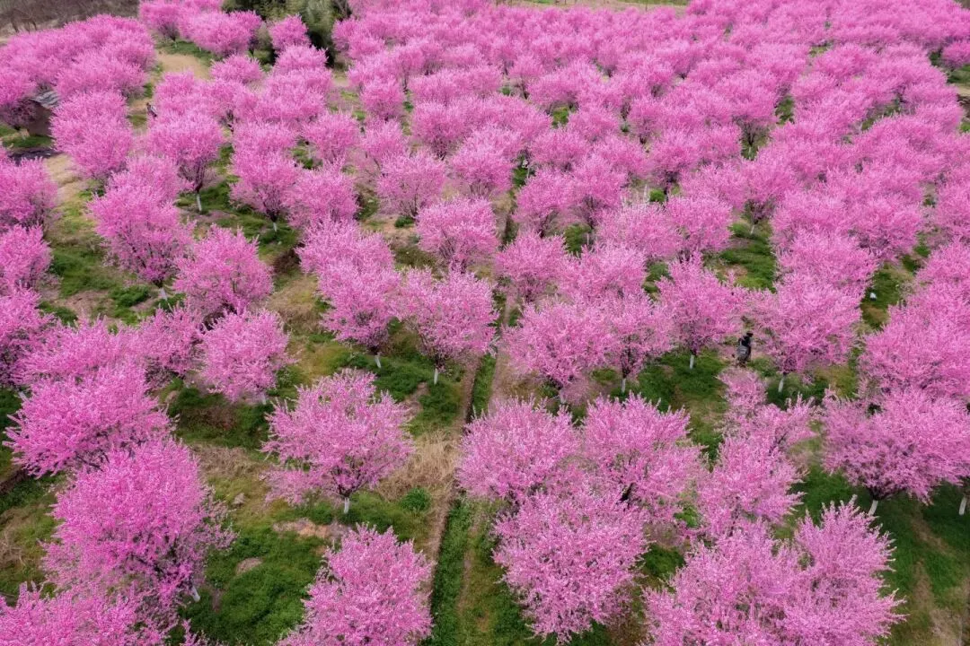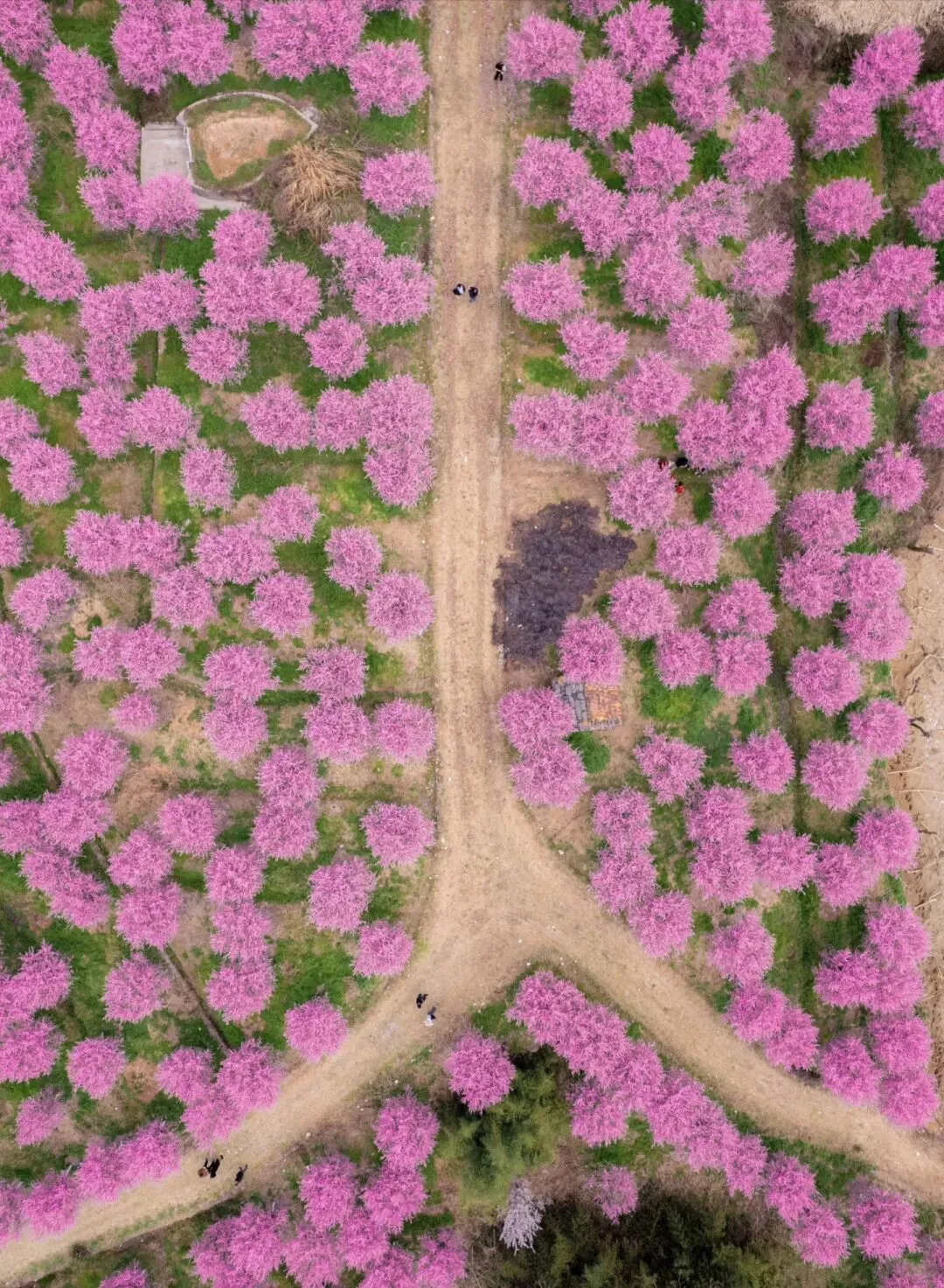 千亩齐放,灼灼其华。不似寻常梅花的粉嫩娇艳,美人梅充满桀骜不驯的生命力,是旺盛的红,仿佛要将春天全部充满枝干,堪称怒放山