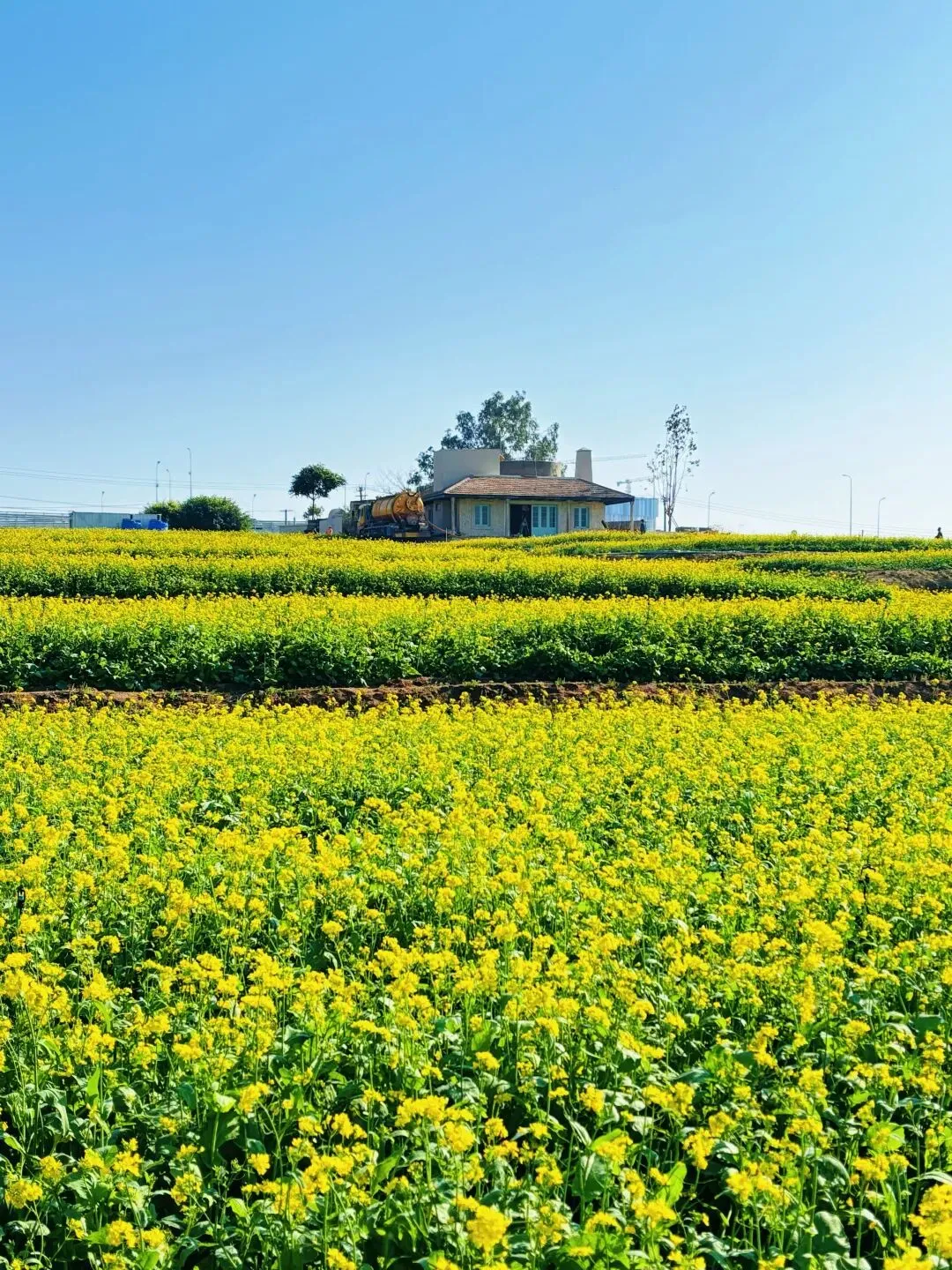 金黄花海、蓝天暖阳