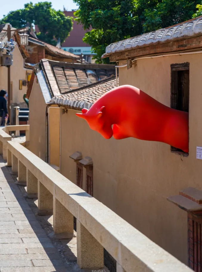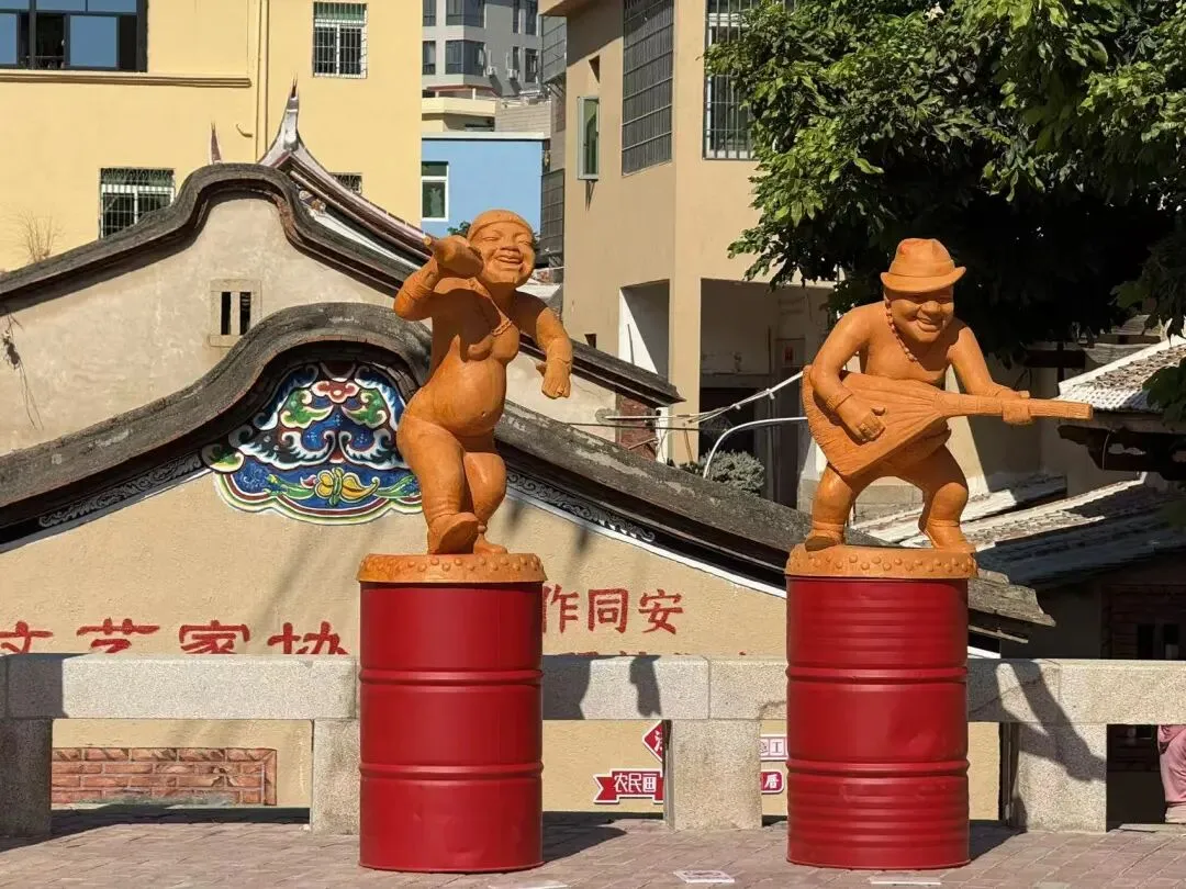 09:30 抵达【后田艺术村落】这里被誉为“同安南大门”,一边是闽南风情浓郁的老渔村,一边是现代化的环东浪漫线,仅靠一座景观天桥相连,仿佛跨越两个时空。村落保存了完整的闽南渔村肌理,34栋古厝民居经修缮重塑,入驻了雕塑、手工艺、视觉设计等多个艺术工作室,古老红砖墙内藏着现代艺术的生机,传统与现代在此和谐共生。