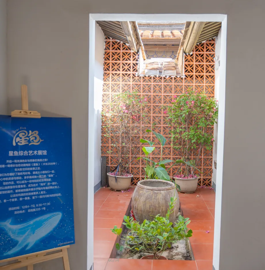 社区精心收储了34栋约3000平方米的古厝民居,用砖石、红瓦、夯土重塑渔村风貌打造出“后田艺术村落”项目