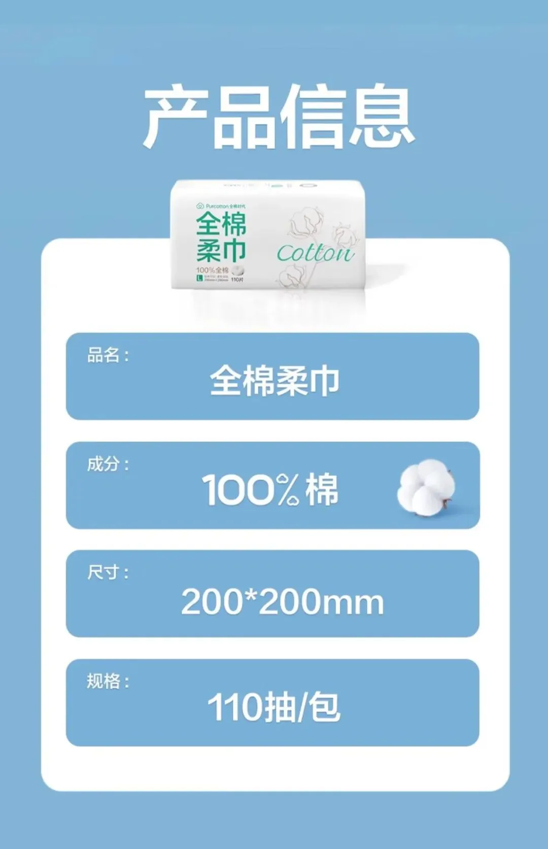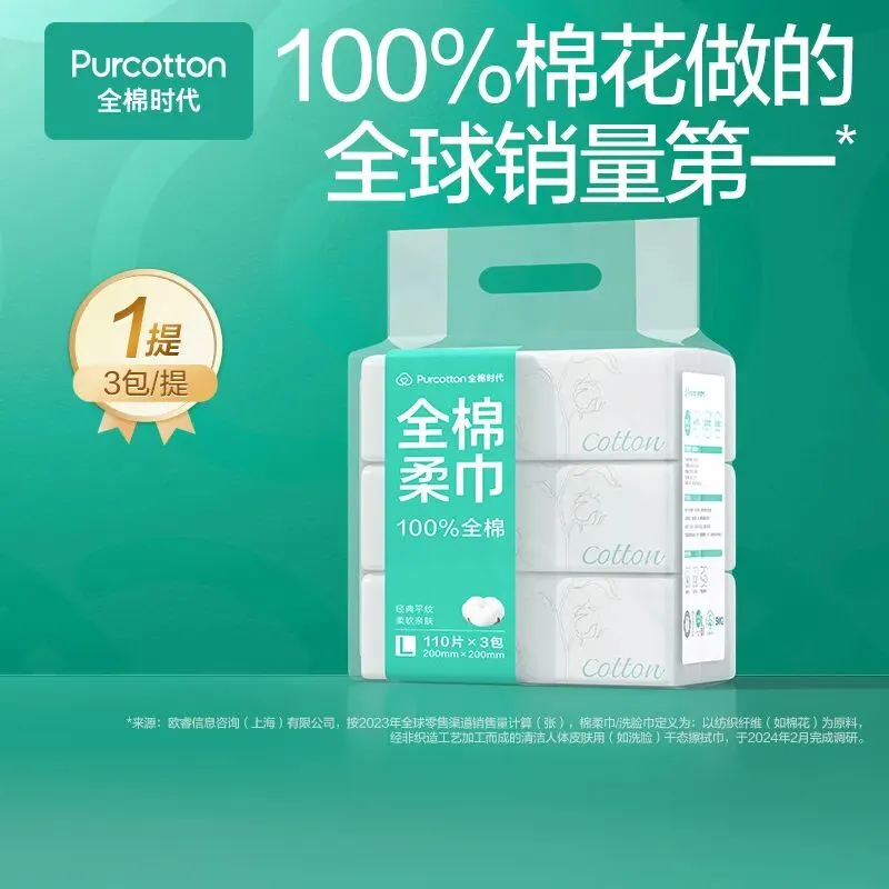 【名称】全棉柔巾45gsm,200*200mm,110片/包,3包/袋