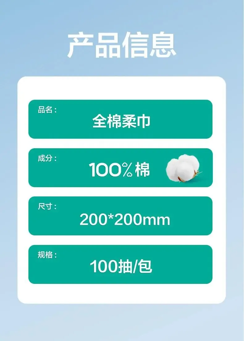 【名称】全棉柔巾60g平纹,200mm*200mm,100片/包,4包/袋
