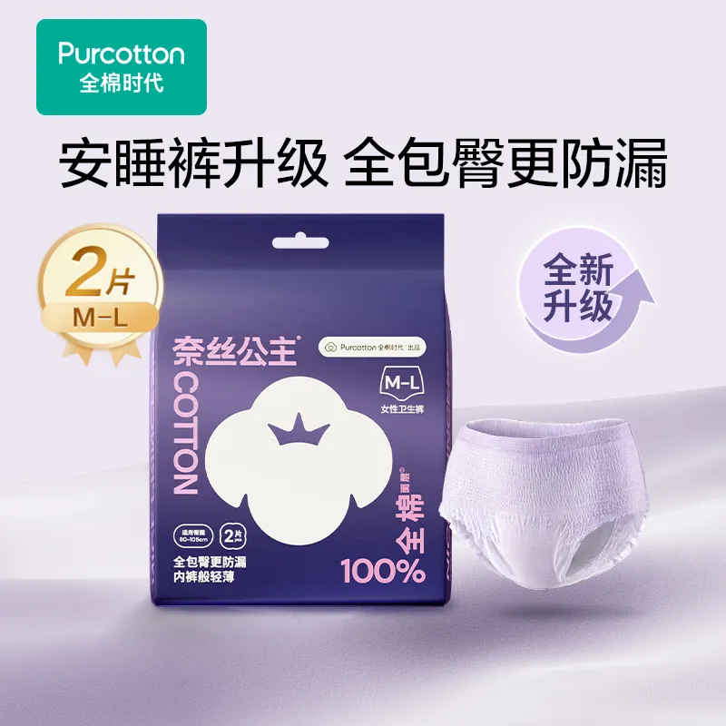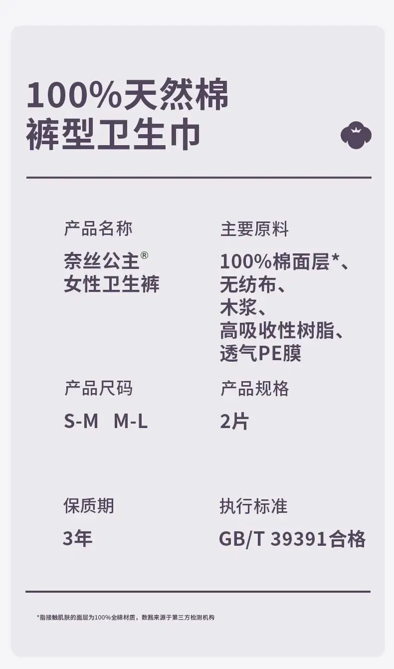 【名称】奈丝公主100%全棉裤型卫生巾,2片/包
