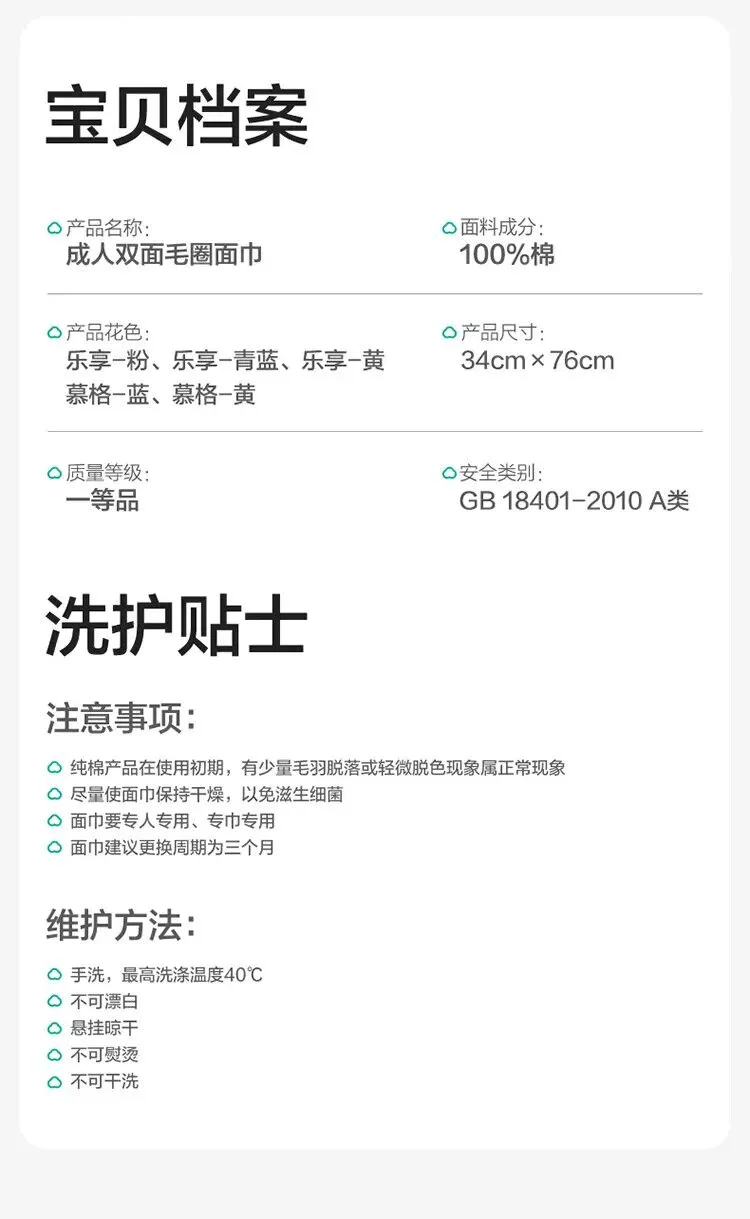 【名称】双面毛圈面巾34cm×76cm,1条装