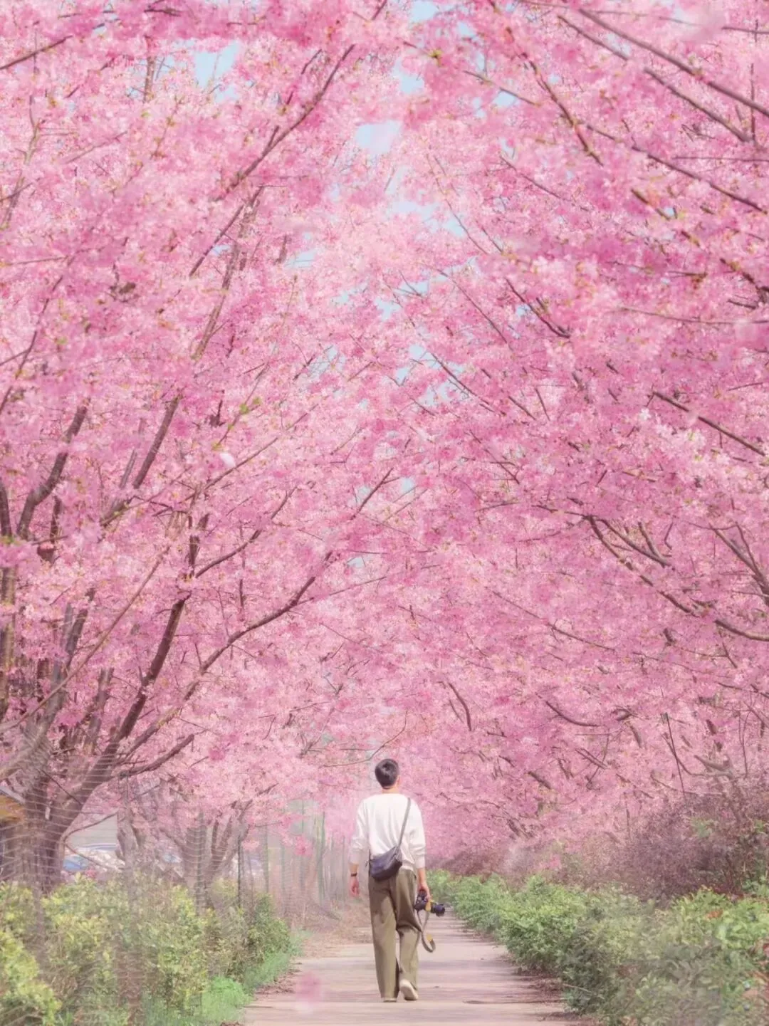 两侧樱花树交织成拱形