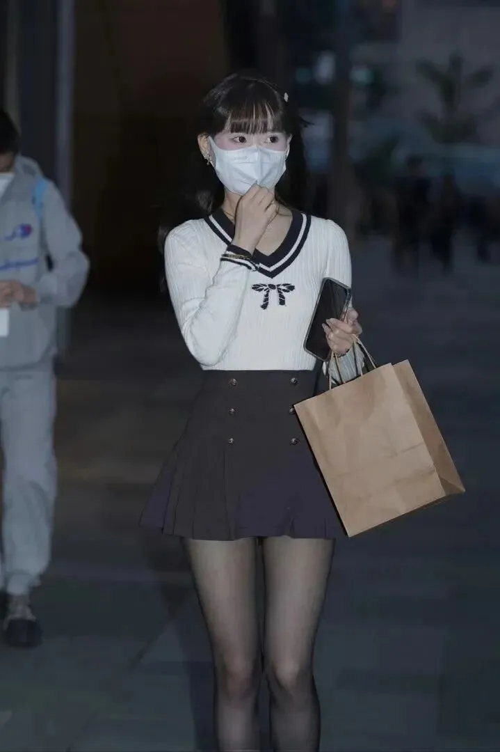 .上九点的.都市,霓虹.灯把街道照得.亮晶晶的.。人群来来.往往,有个.女孩静.静站.在街角,穿.得特别.有味.道。不是那种.夸张的打扮,.却让人.忍不.住多看两.眼。对,.就是.那种学院.风的穿搭,简.单干净,又带.着点.书卷气.,在夜色里显.得格外.迷人。