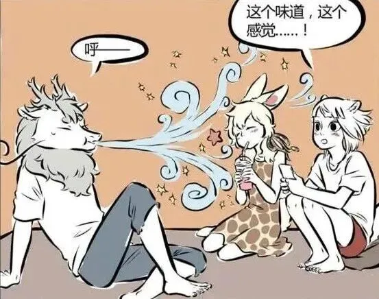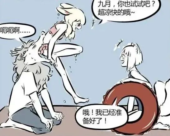 在《非人哉》漫画里,盛夏时节,地表热得直冒热气,就算是有法术的神仙精怪,也被热得浑身难受,九月和小玉也不例外。俩人躲在房间里也挡不住燥热,想跑去海边游泳解暑,却懒得出门。刚好烈烈在旁边,作为西海三太子,他有个特殊能力,嘴巴能直接连通大海,于是烈烈主动让俩人穿泳衣,排队从自己嘴里进去畅游,轻松实现不出门就能泡海解暑的愿望。