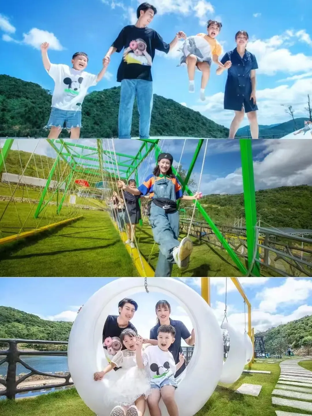 【花样秋千】童心谷里最不缺的可能就是花样秋千了,龙舟秋千、月亮秋千...和小朋友一起在山野里白云间,荡啊荡~