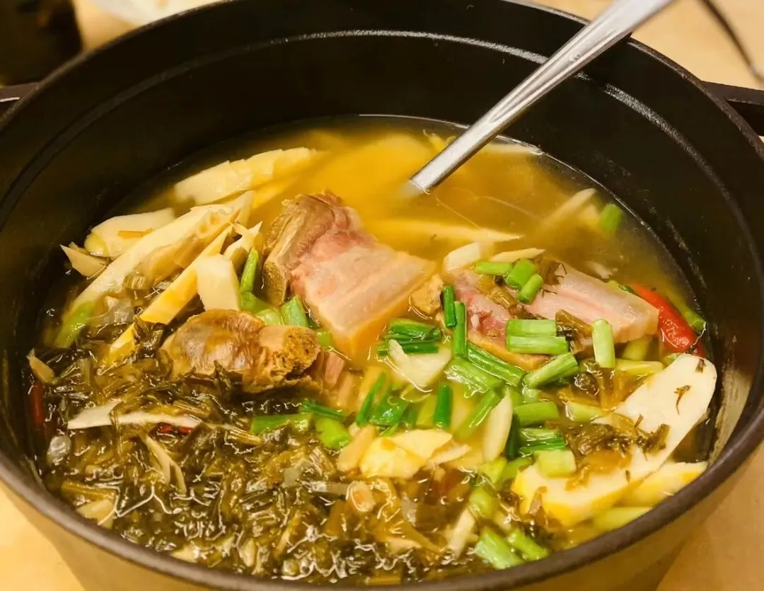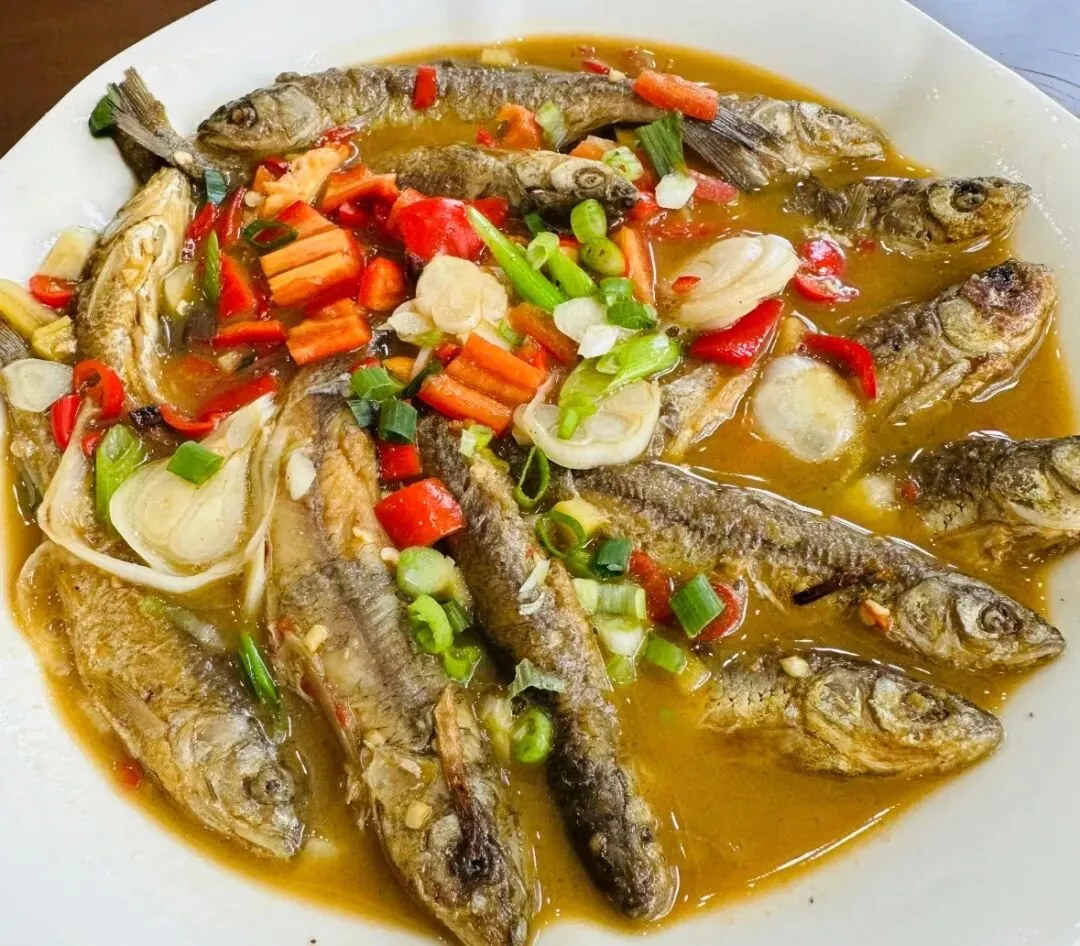 套餐内容:腊肉雪菜鲜笋煲、红烧小溪鱼、西红柿炒蛋、炒油青菜、米饭