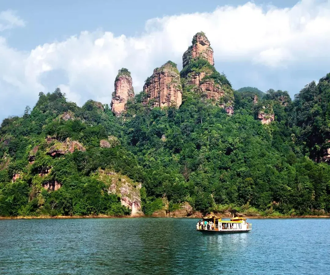酒店享用早餐,后乘车前往游览国家5A级景区,世界自然遗产核心景区“天下第一湖山”—— 【大金湖】(游览时间4小时左右):搭乘游船去欣赏水上丹霞奇观大金湖。碧水丹山合成了百里风光长卷,人在画中游,心情舒畅。沿途游船会靠岸,去拜访有着“南方悬空寺”之称的甘露岩寺,感叹古人用一柱撑起整座寺庙的建筑巧思,或是听“暮鼓晨钟”虔心祈福;也可体验在真正“一线通天”岩缝中摸索攀爬的乐趣;当然别忘记在“大赤壁”、“仙寿岩”前面留下你与时间的合影。游十里平湖、观赏世界独享的水上丹霞奇观、体验丹山与碧水的完美结合,惊叹“一柱插地、不假片瓦”的南方悬空千年古刹—甘露寺、陆上一线天、野趣园、大赤壁等景点领略水上丹霞之奇观,体验水上佛国之千姿。
