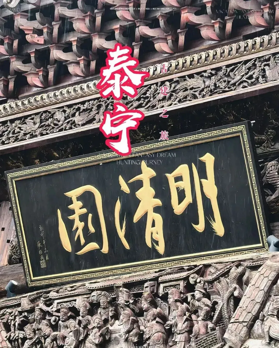 午餐后,游览【明清园】是福建省十大重点文化产业园之一,是一个以收藏展示古建筑和木雕艺术精品为主的民间收藏博物馆。主要景点包括石牌坊、司马府第、藏宝阁、德馨书屋、“道志和”后堂和五百罗汉座屏等。园内展示了全国各地明清时期的各流派古建筑以及珍贵木雕艺术珍品,结构精巧的明代民居,富丽堂皇的清代原真性徽派建筑,极具震撼力的明清收藏品,清代木门楼,石碑林,书院祠堂等齐聚一园,在古典园林的映衬下,成就了独具风韵的私家收藏文化大观园。