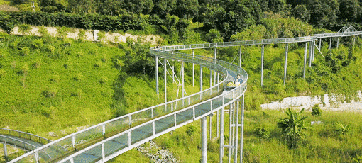 放飞激情,挑战自我。森林管轨式滑道全长近1000米拥有多个惊险刺激的360度弯道大回旋是放飞激情,挑战自我的最佳选择