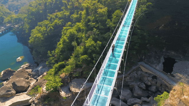横跨峡谷的432米滑索,是勇敢者的「天空通关卡」,扣上安全装备的瞬间,心跳已经开始加速 —— 双脚悬空的刹那,风直接灌进衣领,整个人像颗子弹「咻」地射向对岸!