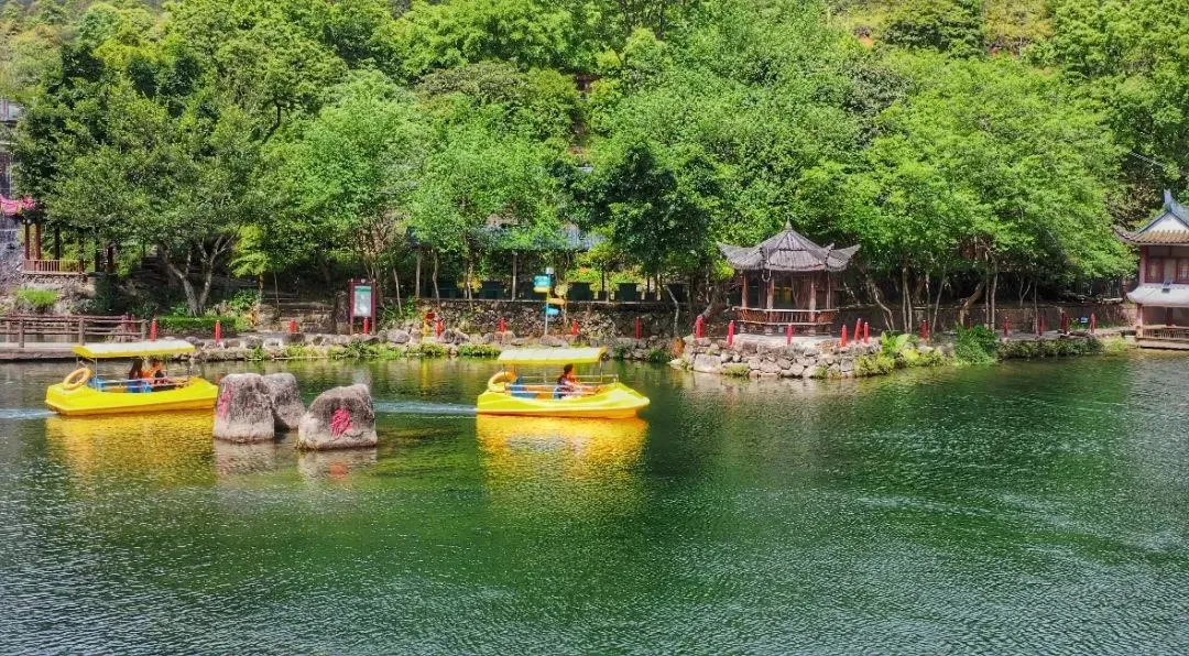 09:30抵达【龙谷森林公园景区】观龙潭瀑布景观,见证观音显圣,朝拜送子观音古洞,撒种米筛潭。游船码头体验【竹筏】(8-9人/排)欣赏湖光山色。