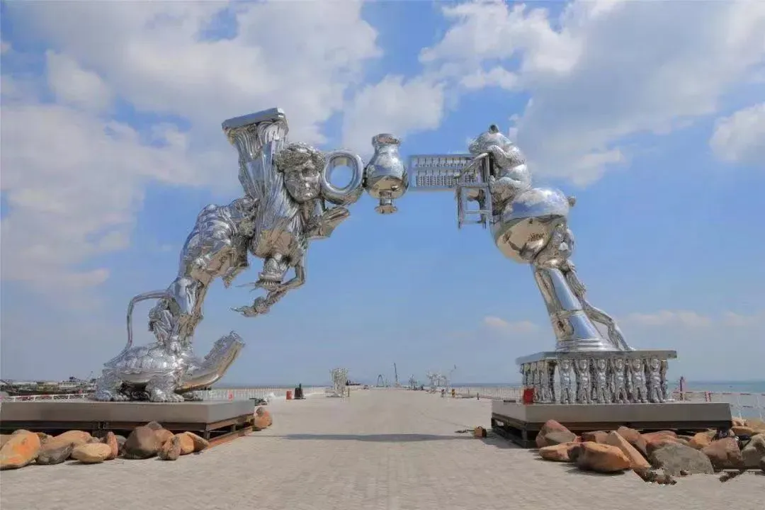 在后田艺术村9位厦门青年雕塑家带着27件作品,在这里与海洋展开深情对话。