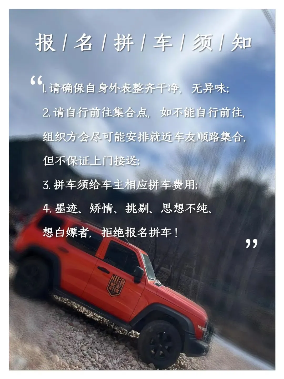 2、  需要拼车的提前报名,拼车费自理(建议300/人,给车主)