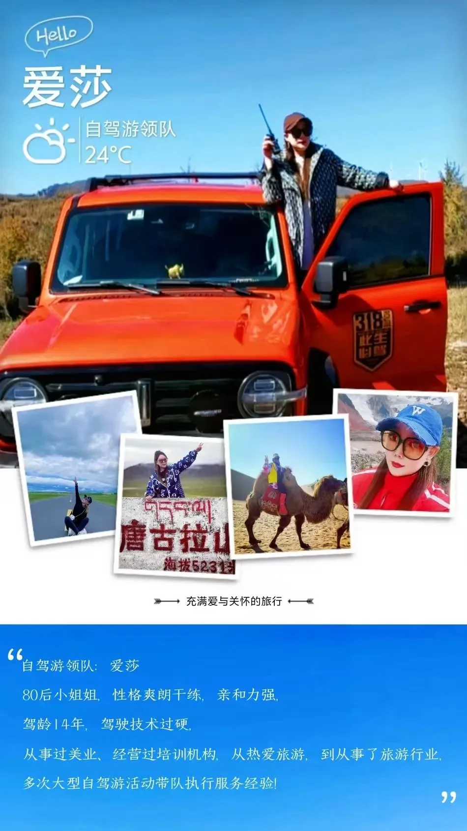 1、领航:领航救援保障车2、领队:全程专业自驾游领队组织协调服务3、通讯:手台使用(每台车一个,押金200,归还退还4、物料:车贴等物料