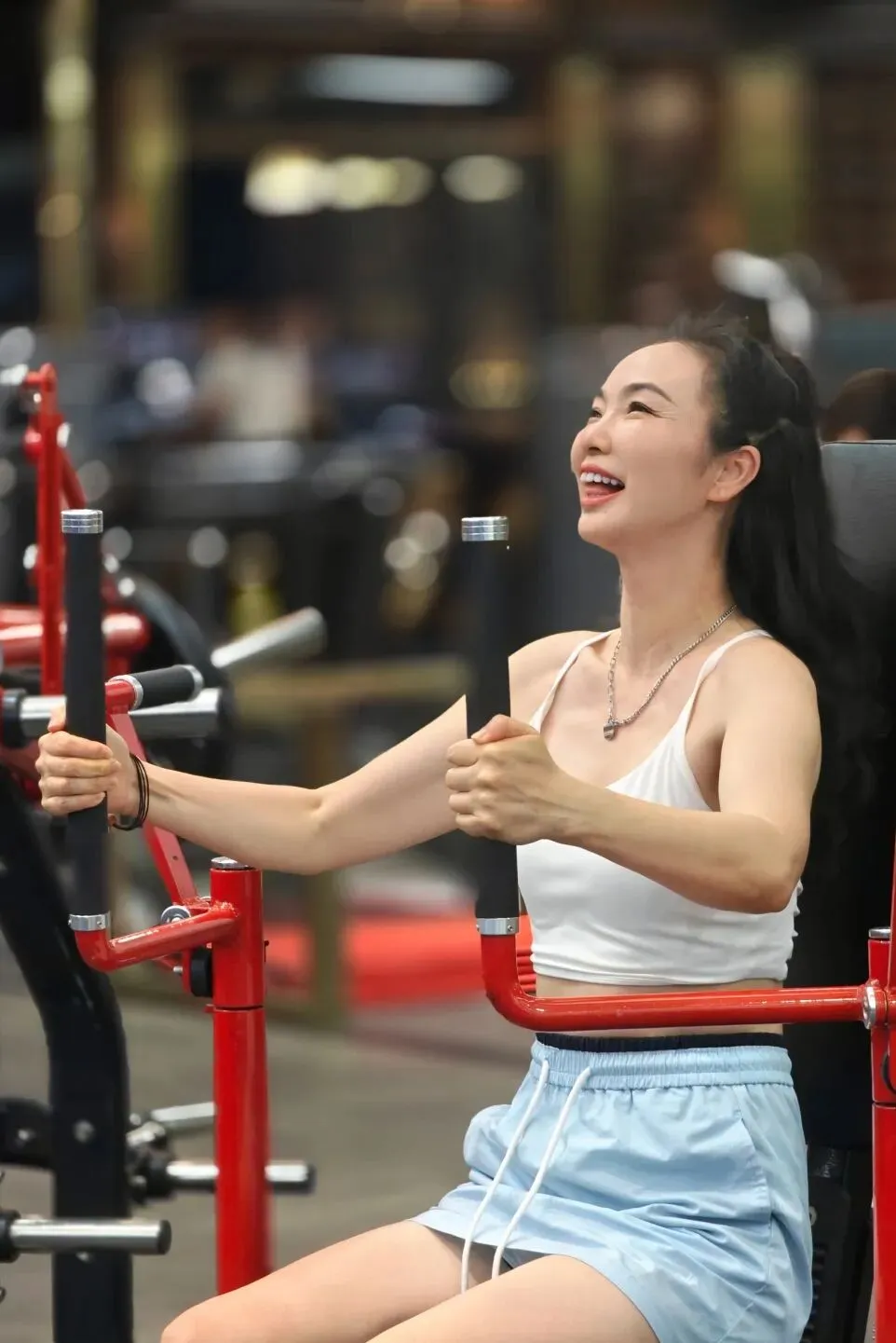真正的转变发生在2019年底,她决定走进一个更具挑战性的领域——健身房,开始“撸铁”。这不仅是运动方式的转变,更是心态上的一次主动出击。她不再满足于温和的舒展,而是主动追求力量、线条与对身体的深层掌控。对她来说,健身房的门后,藏着的是一个更挺拔、更自信、更不被定义的自己。