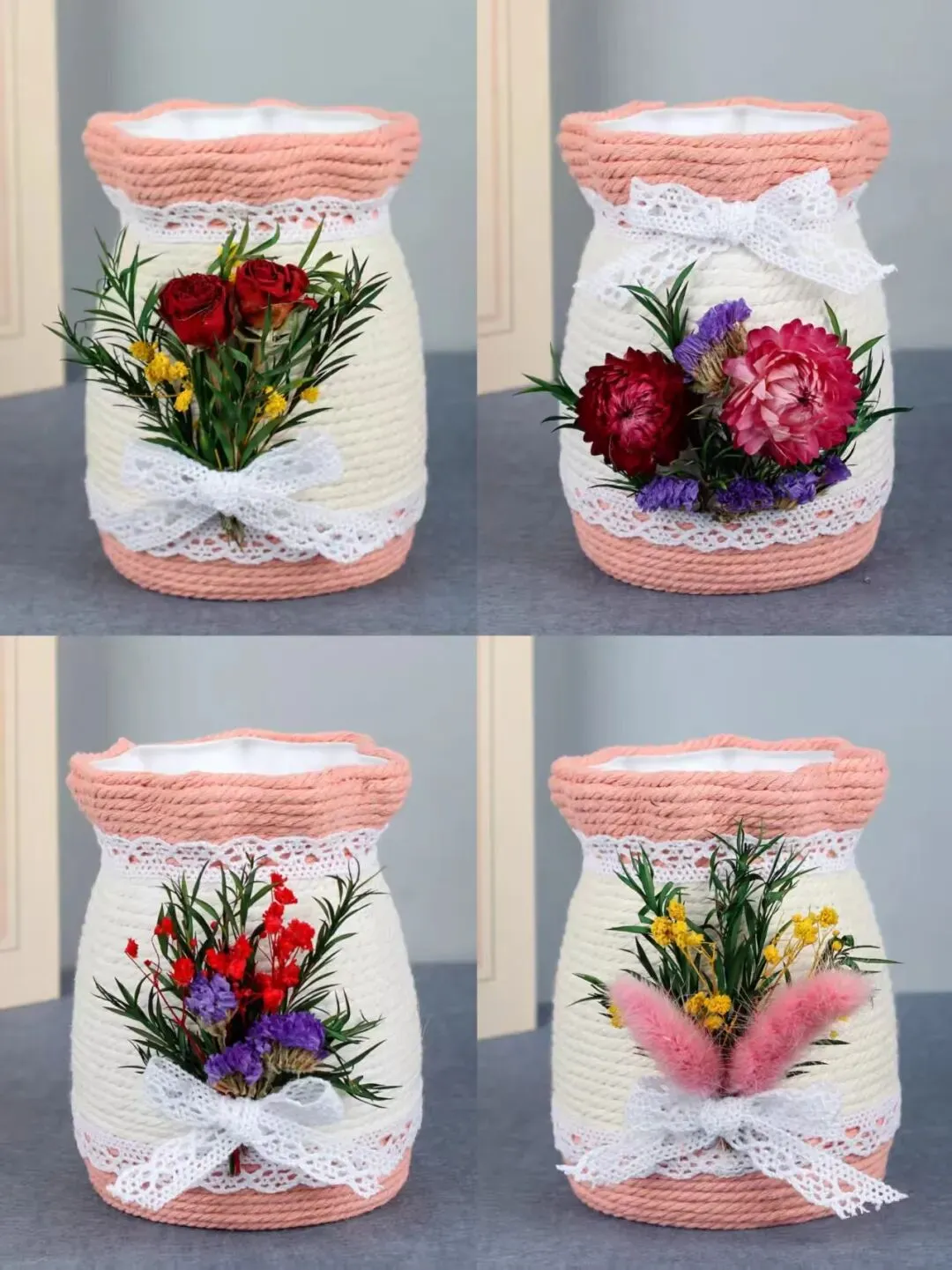 以巧手编织,将干花巧妙融合,打造兼具质感与生机的创意花瓶。简约编织勾勒质朴美感,鲜灵花植点缀生活诗意,为居家空间增添一抹清新雅致的自然气息。