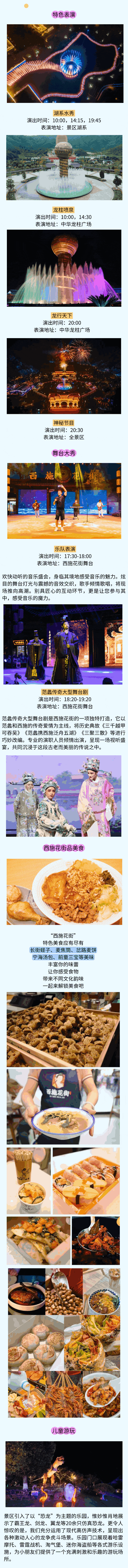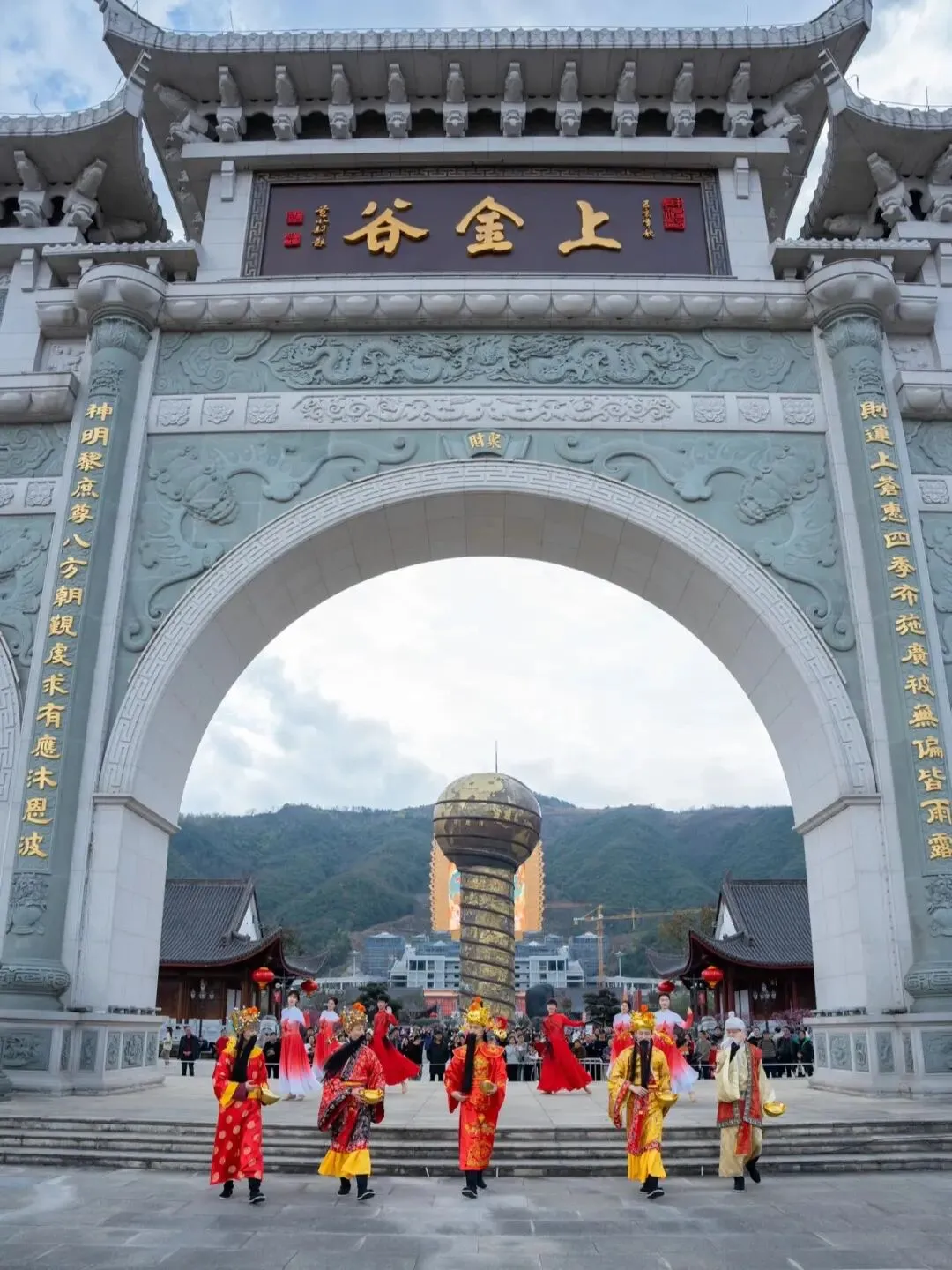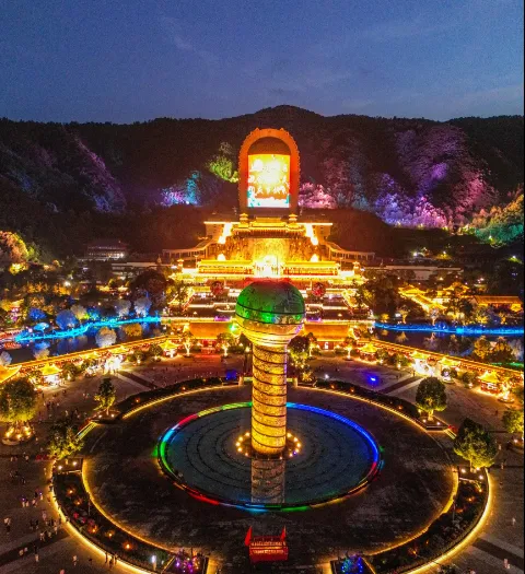 夜景演出场次~19:15水系光影秀(金水桥),19:30龙行天下(龙柱表演)。备注:上金谷夜景灯光秀,如遇天气恶劣,演出会有变动,实际以当天安排为准,敬请谅解!游览结束入住农家乐。