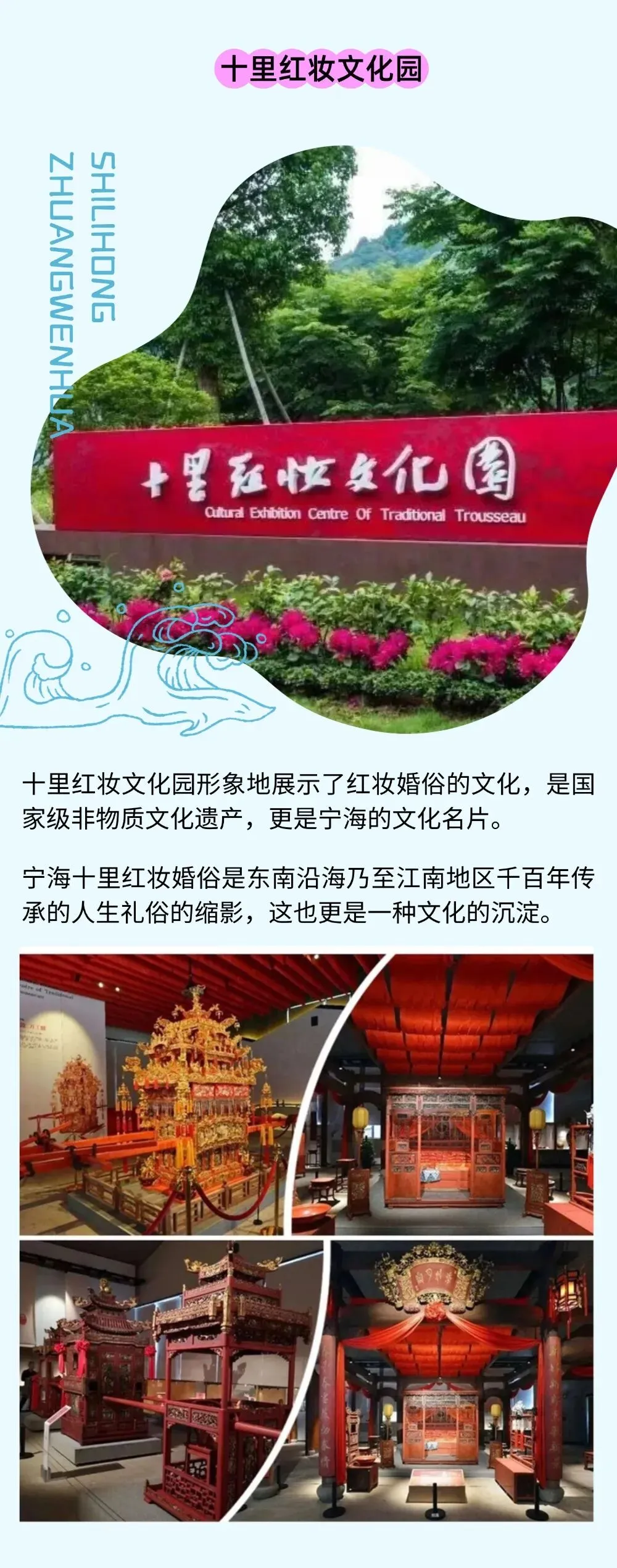 导游或司机接团后乘旅游车赴宁海(车程约2.5小时),午餐自理,前往【十里红妆博物馆】(免门票,若时间允许赠送游览,不去不退费用),博物馆形象地展示了红妆婚俗的文化,是国家级非物质文化遗产,更是宁海的文化名片。