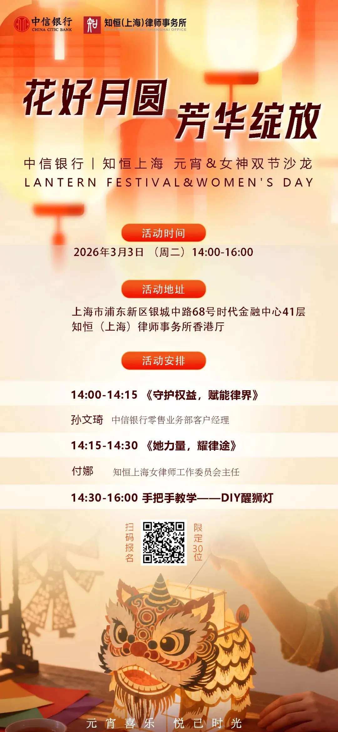 当前位置:首页>美女资讯>知恒预告 | 中信银行X知恒上海元宵&女神双节沙龙报名中