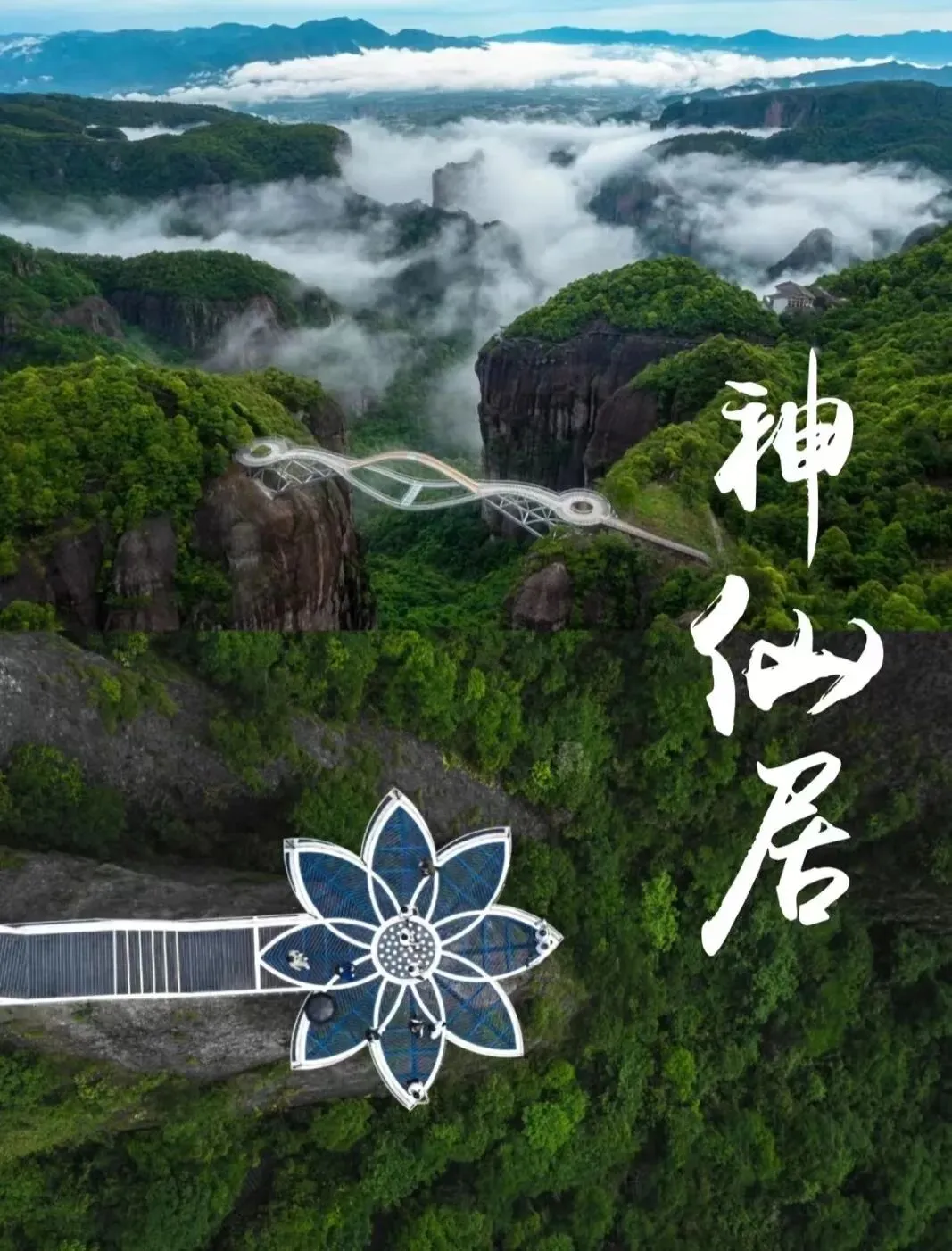 3. 游神仙居漫步南天高空索桥、体验玻璃观景台,打卡网红如意桥、卧龙桥。