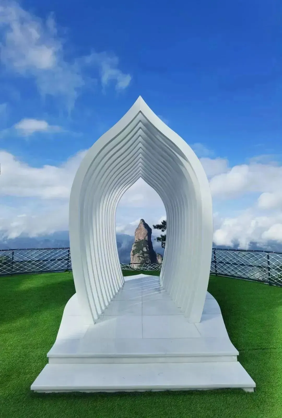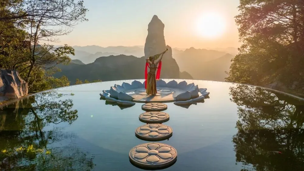 莲座与远处的观音峰交相辉映