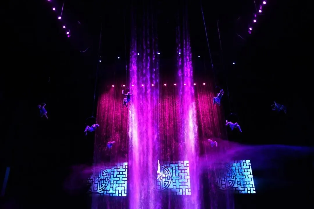 这里有世界最大剧场水池,1400万升储水量堪比4个奥运泳池,舞台可一秒完成干湿切换,从坚实台面瞬间化作碧波水世界,如梦似幻。