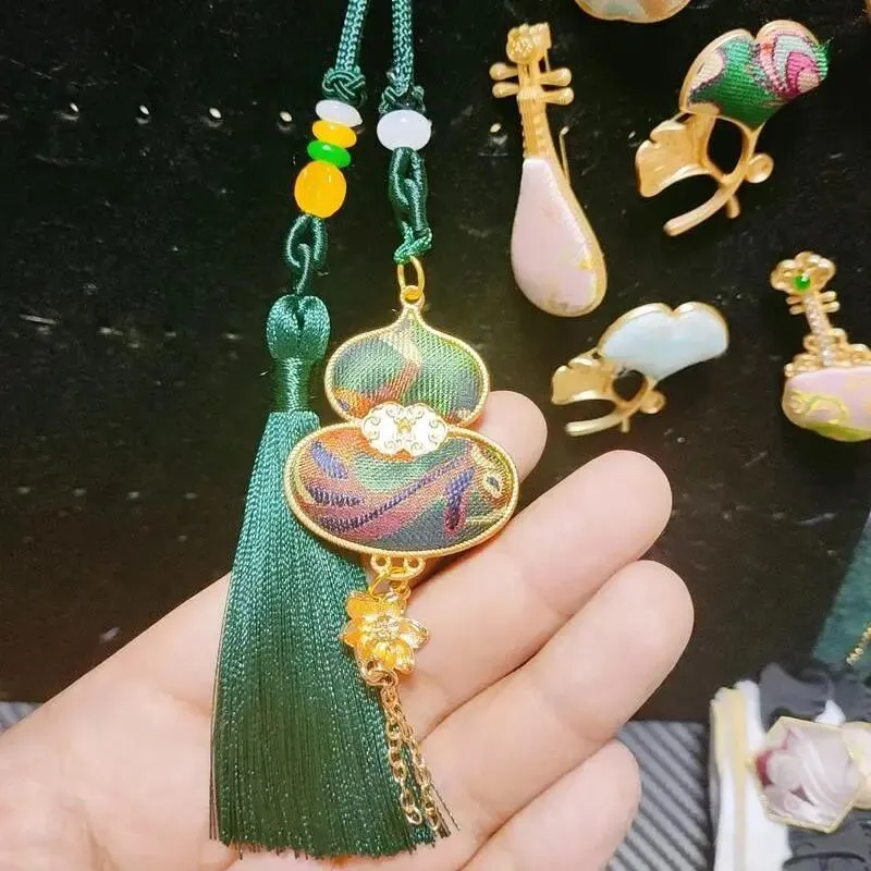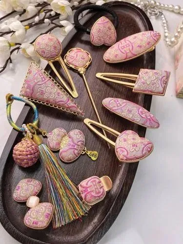 将流光溢彩的宋锦面料,制作成精致的发夹。或是亲手缝制一款宋锦小挂件(香囊/车挂),传统纹样寓意吉祥,既是装饰,也是护身符。