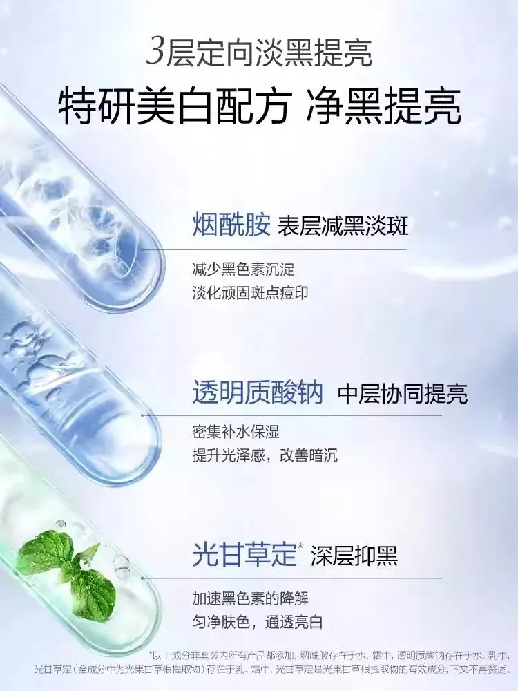 内含:水135ml+乳100ml+霜15g+洁颜泡沫50g+面膜3片