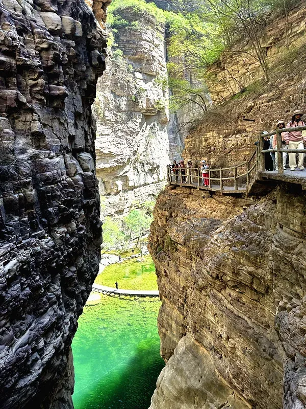 之后前往太行山大峡谷,太行大峡谷横跨河南、山西两省,将巍峨山川与灵秀水景完美融合,以其磅礴的气势与绝美的风光,成为无数游客心之所向的旅游胜地。踏入太行大峡谷,就像走进了一幅雄浑壮阔的山水画卷。这里的山峰巍峨耸立,悬崖峭壁如斧劈刀削,在岁月的雕琢下,形态各异,有的似利剑直插云霄,有的像巨人屹立天地,展现着大自然的鬼斧神工 。