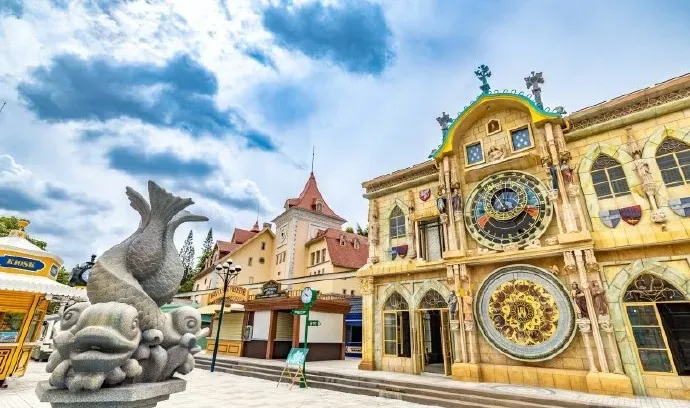 小镇的每个角落都散发着浓郁的欧洲气息,特别是那布拉格天文钟的复刻版、庄严的欧式大教堂、礼品商店等,皆充满异国情调。小镇的建筑风格丰富多样,漫步其间,布拉格天文钟令人赞叹,欧式大教堂尽显庄严,布拉格礼品店格外精致,还有那些充满童话氛围的文创店、咖啡店、茶饮店等等,一切都让人仿佛踏入童话世界。