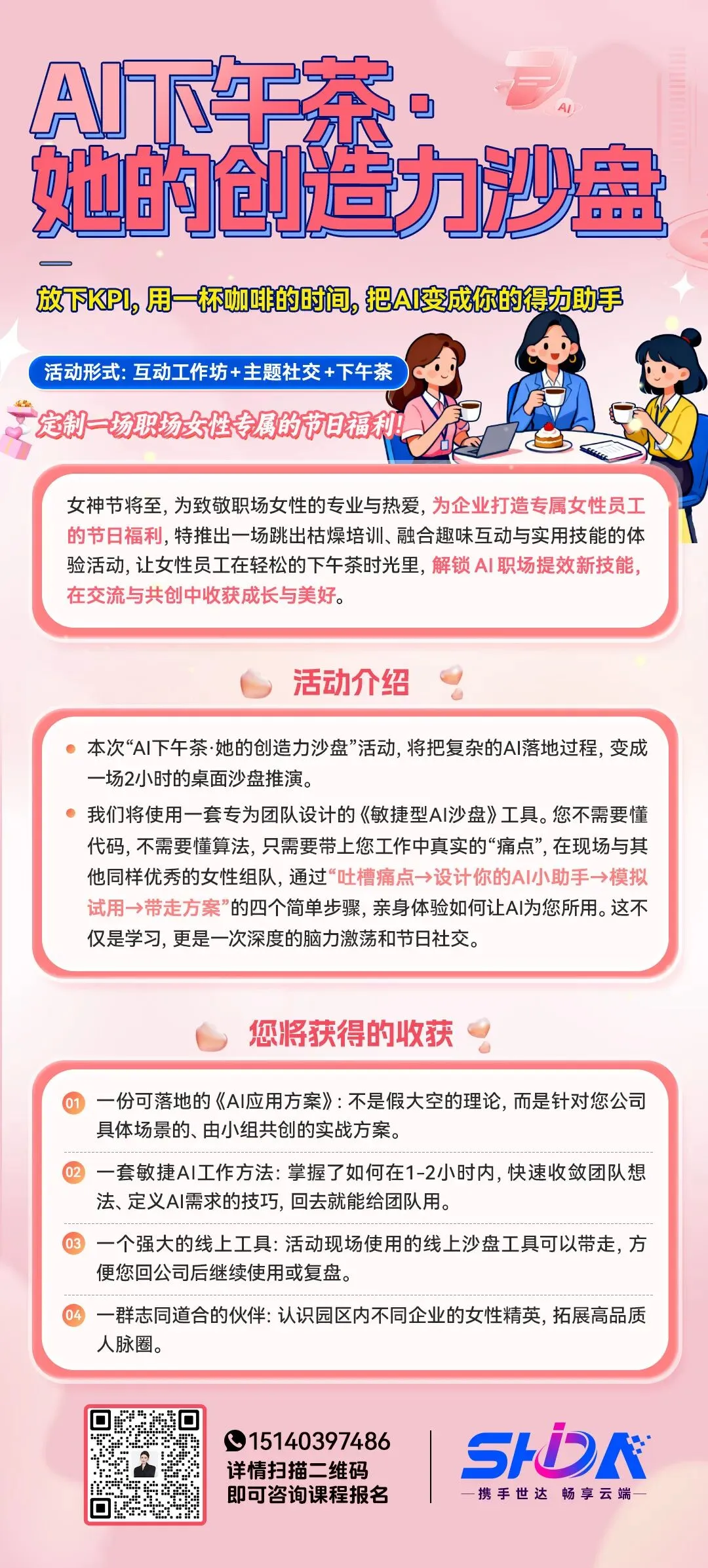 “AI下午茶·她的创造力沙盘”,不为培训,只为赋能。2小时,一杯咖啡的时间,让她们: