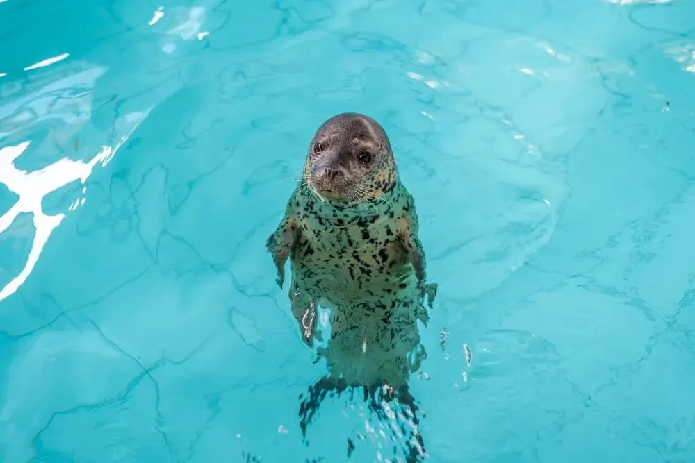 海洋大世界的第一站是海豹湾,在这里,你可以看到形如“煤气罐罐”的斑海豹!