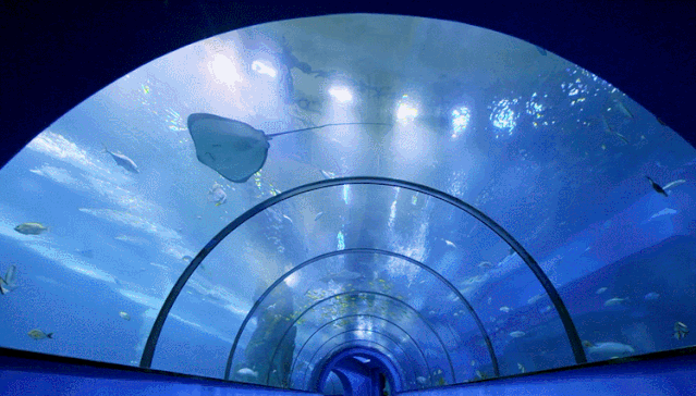 在出片率超高的海底隧道里,你可以轻松跟海洋生物“肩并肩”,别忘了多拍些美照哦~