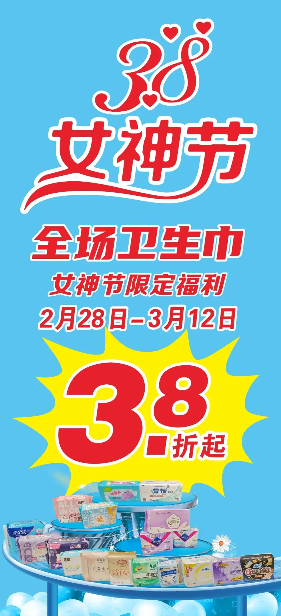当前位置:首页>美女资讯>女神节限定福利,全场卫生巾3.8折起