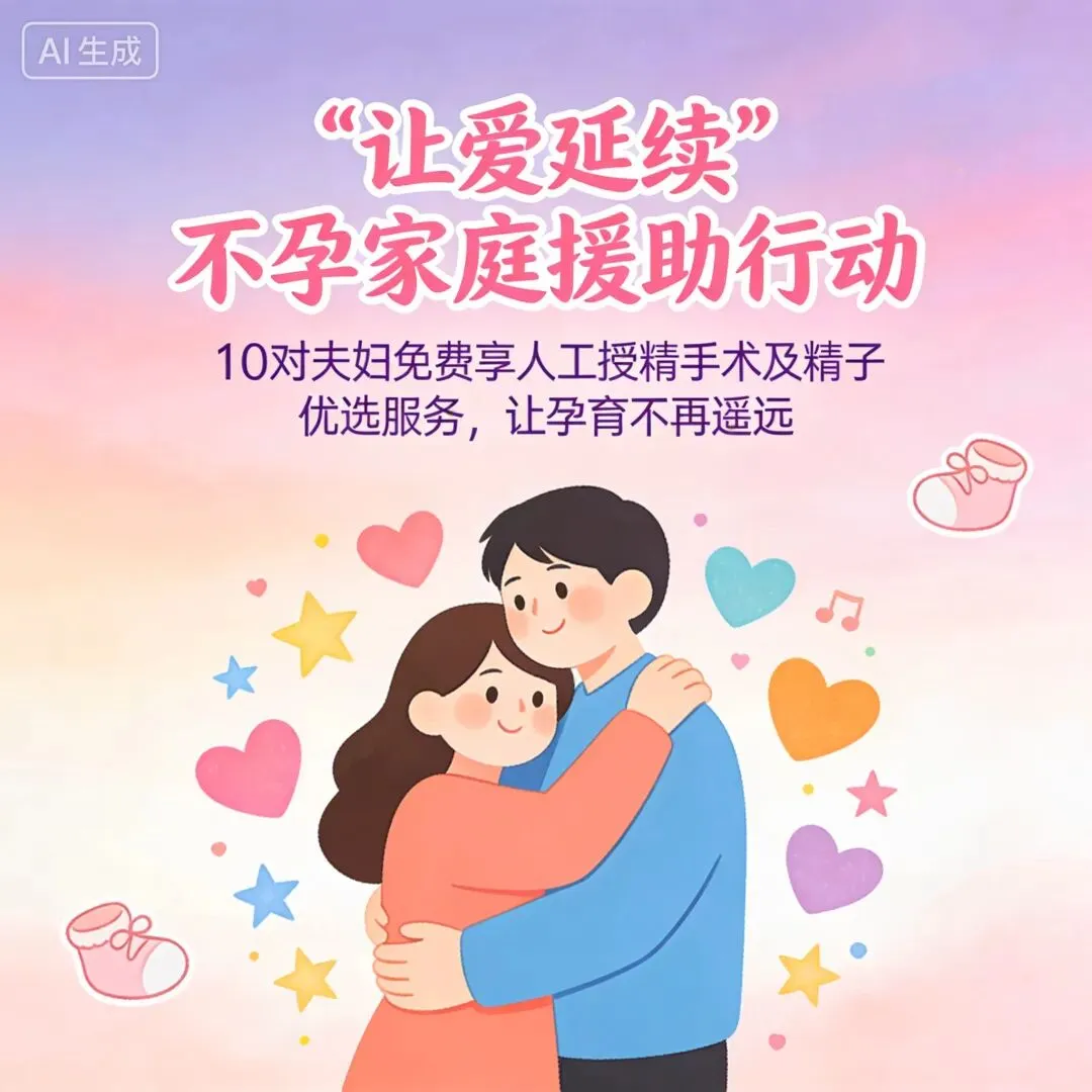为关爱广大有不孕困扰的病友,为10对不孕症夫妇免除1次人工授精手术费用、精子优选费用。数量有限先到先得。