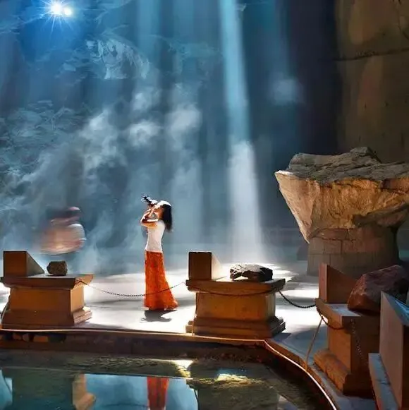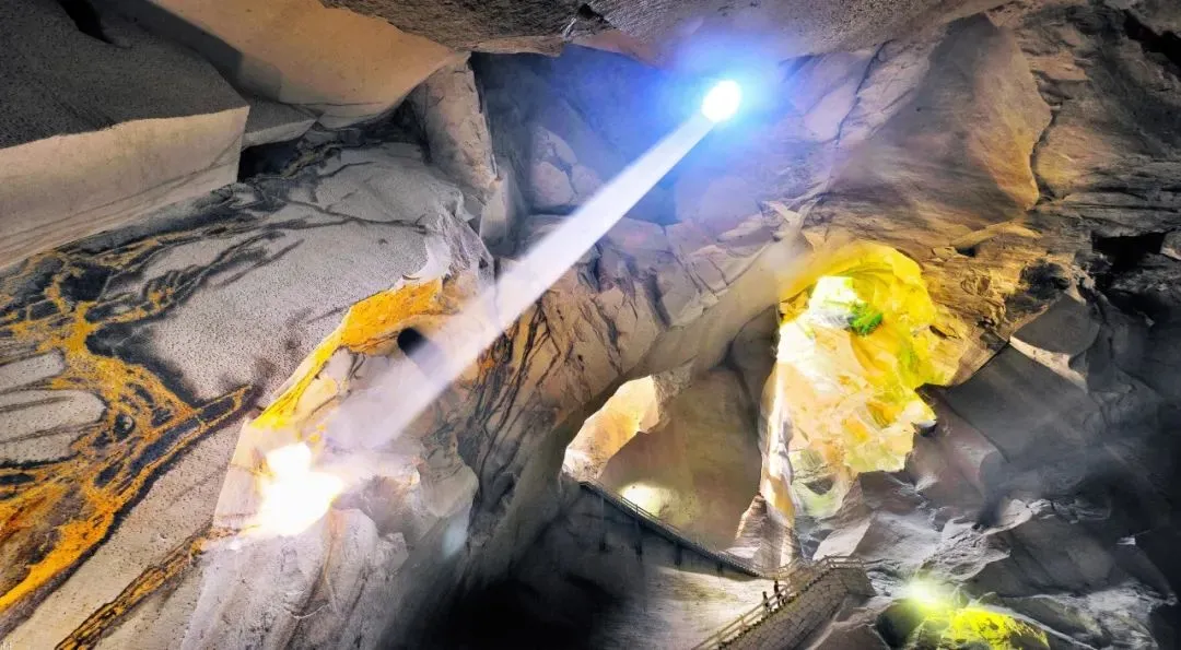 岩硐音乐厅 高约60米,直径约100米,形若斜倾之覆钟,面积2000多平方米,能容纳700余人,是一处天然岩硐音乐厅,无论在任何角落都能感受到同频立体声般的效果。“德国莱茵河之声”“荷兰皇家交响乐团”“美国爵士钢琴 ”“八秒之声”合唱专场音乐会、新年岩硐音乐会等大型主题活动都在这里演出过。