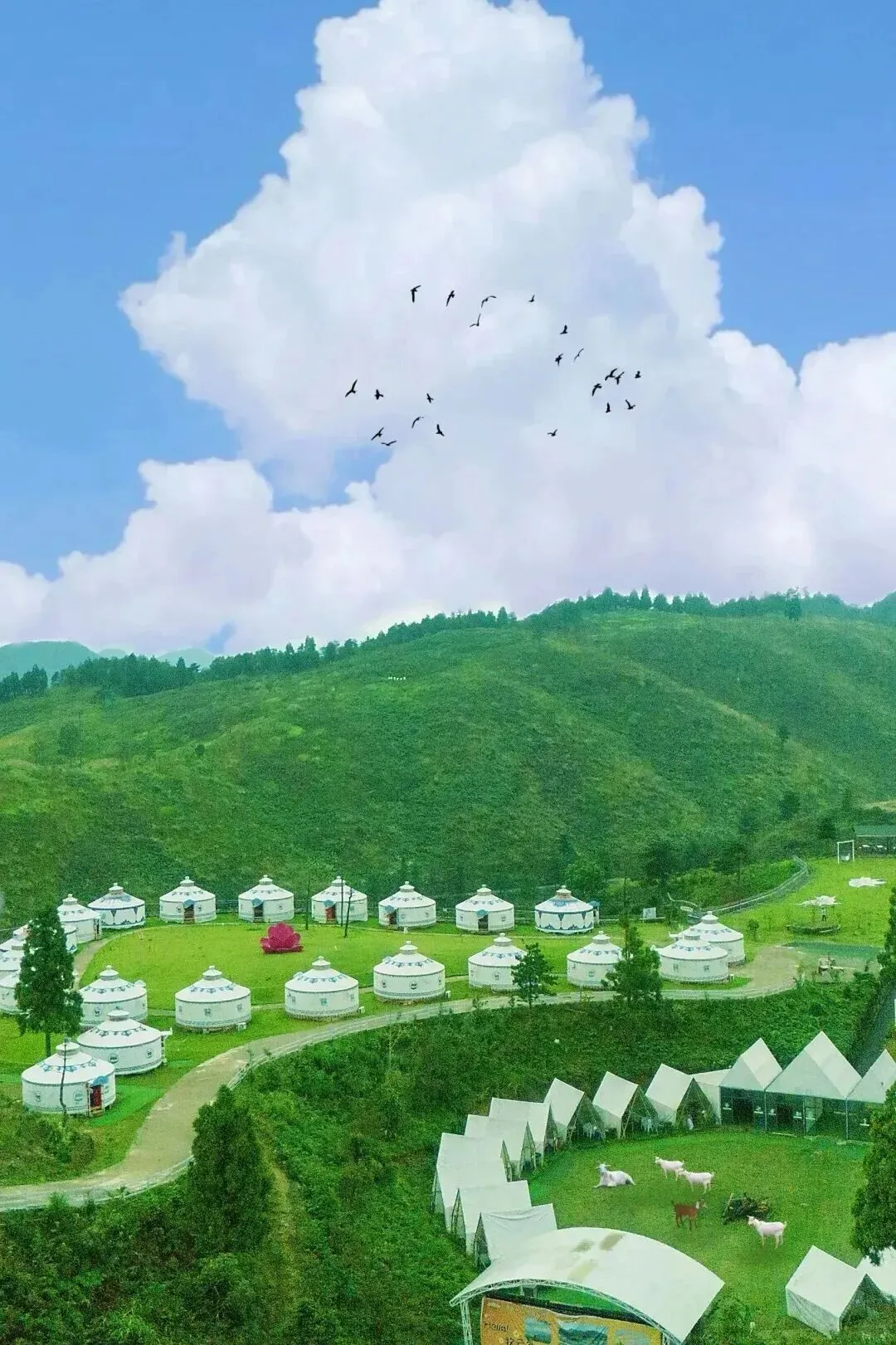 群山环抱,云雾缭绕,层林渐染,像极了走进大自然的调色盘,在蒙古包栈道走过,奔跑在大草原上玻璃秋千,牧云溪谷,仙女瀑,牧云大草坪