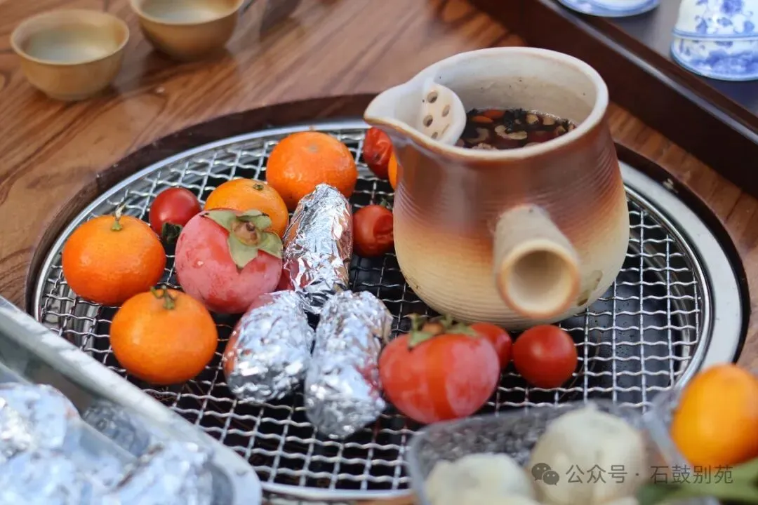 在山庄里享受围炉煮茶的诗意