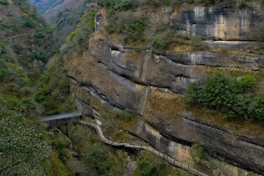 鸟道沿着半山崖壁而上,集雄、奇、险、峻于一体,行走在鸟道之间,可尽情享受春风拂面,侧身远眺,更能切身感受到蜀道天险的无边魅力。