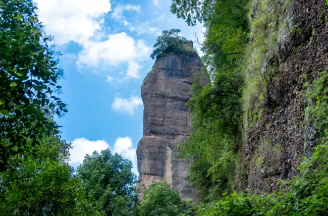 还可以体验一下“一线天”,一线天又名宝剑岩,仅容一人侧身而过,两岩所留缝隙好似一柄宝剑剑柄朝地,在逆光效果下,剑身闪闪放光,让人忍不住赞叹自然的鬼斧神工。