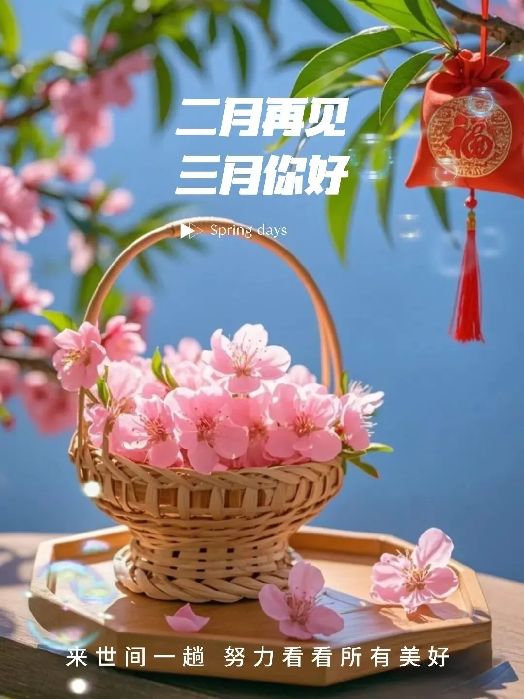 告别二月的烦恼, 迎接三月的美好, 愿一切顺遂,幸福常伴。 二月再见,三月你好呀!