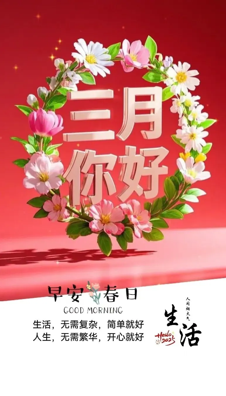 二月再见,三月你好,春暖花开,万物复苏。周六早安,愿你在新的一个月里,心怀希望,勇敢追梦!大年十二吉祥如意,四季平安,岁岁安康!