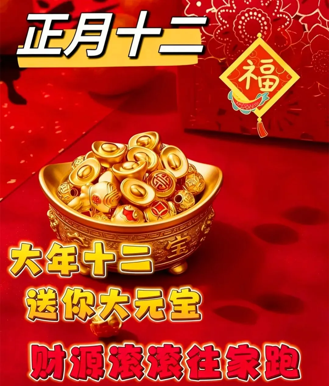 正月十二,最美的祝福送给你,愿你生活处处有人气,万事顺利有运气,吉祥如意有福气,财源滚滚有财气,总之一切都顺气!