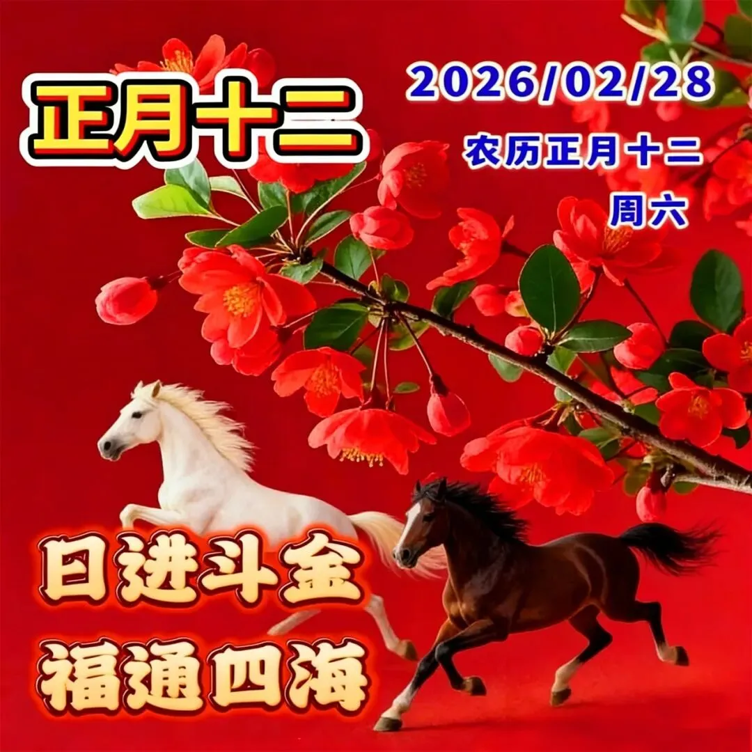 正月十二,正月的第十二天,家人是十二画,爱人是十二画,恋人是十二画,朋友是十二画,兄弟也是十二画,祝愿马年大吉大利!