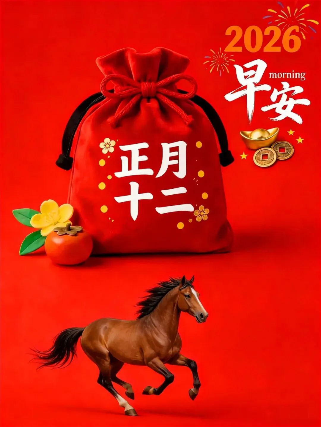 正月十二送福来,马年好运把门开,愿你事业红起来,大大钱包鼓起来,幸福日子超精彩,亲情友情甜似海,早上好!