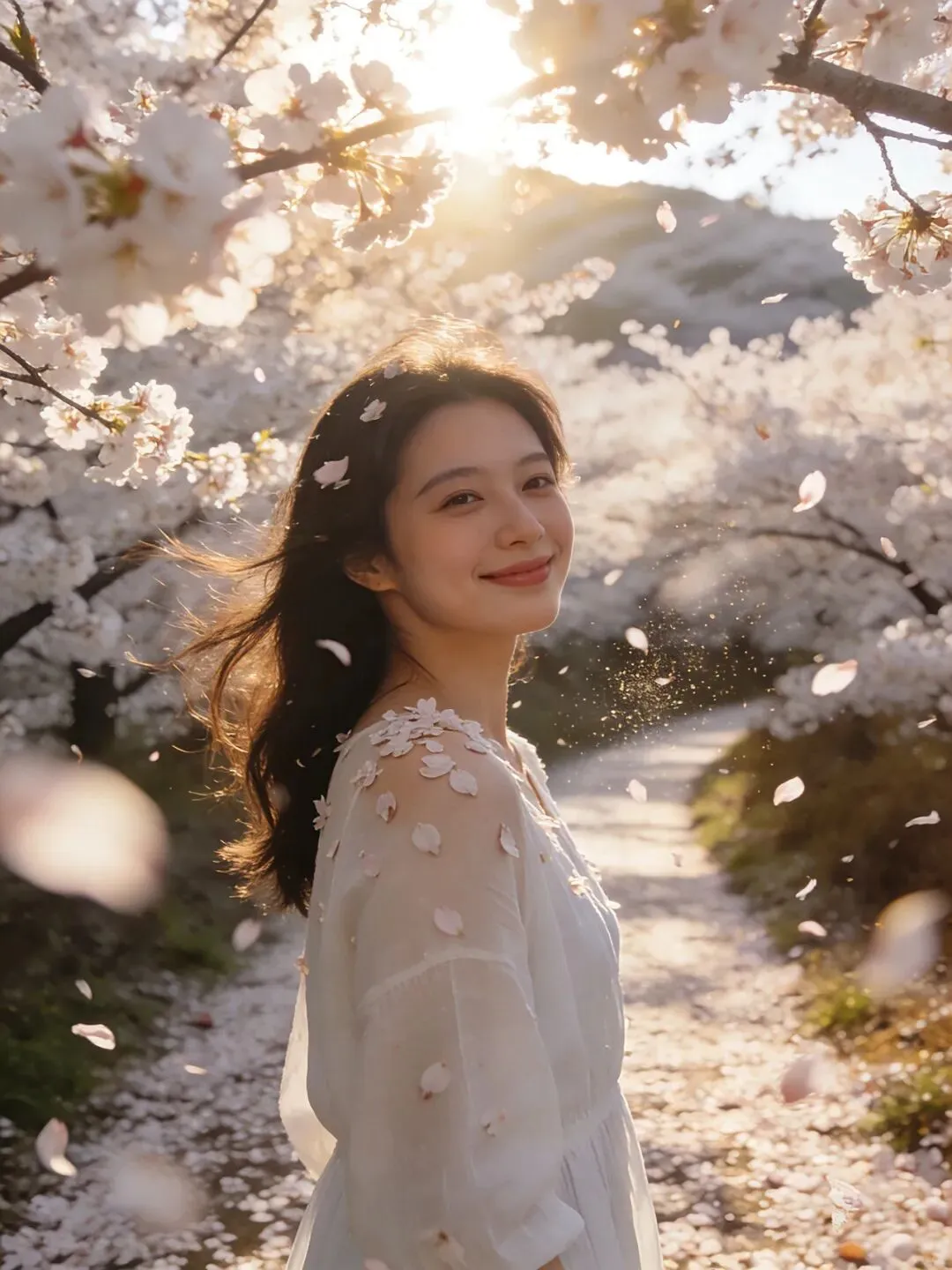 万亩樱桃花如期绽放,漫山遍野如霜似雪。风一吹,花瓣簌簌飘落,铺成一条浪漫花径,走在其中,仿佛踏入童话世界。白衣胜雪,浅笑嫣然,每一帧画面都温柔到极致。阳光穿过花枝,落在肩头,连呼吸都带着清甜的花香。